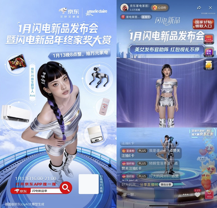 在以情感共识赋予居品温度的同期,京东家电家居“闪电新品”发力期间改进赋能营销升级。依托京东科技的 AI 中枢能力,通过数字东说念主Ava直播、数字男团E'Core MV、数字东说念主前卫大片等一系列改进体式,构建起“期间+本体+居品”三维和会千里浸式体验矩阵,让优质新品的价值传递新无邪、互动更深化,精确触达更多消耗者。