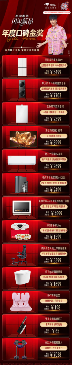 此外,秉抓着对品性的信守,京东家电家居“闪电新品”与京东金榜全面评估居品销售热度、用户关注东说念主气、用户口碑、品牌力及居品增速等5大维度数据,同一推出了2025年新品年度金榜、2025年高端家电家居年度金榜,涵盖九大细分榜单。值得一提的是,该榜单所以京东大数据为基础,任何东说念主工齐无法进行任何关预。并且整个入选居品均属于新品A层级,可匡助消耗者镌汰决策时分,优化消耗体验,也能为品牌厂商提供改进指导。